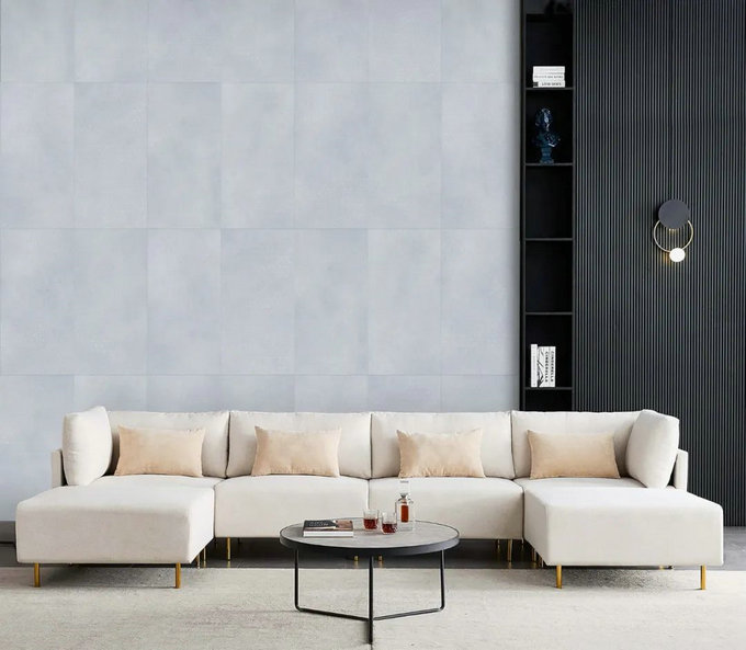 现代瓷砖光泽柔和(接近天然石材),灯光照射时无光污染,解决了全抛釉抛光砖在房子灯光照射下强烈反光,刺激眼睛造成视觉疲劳的弊端,使用更舒适。