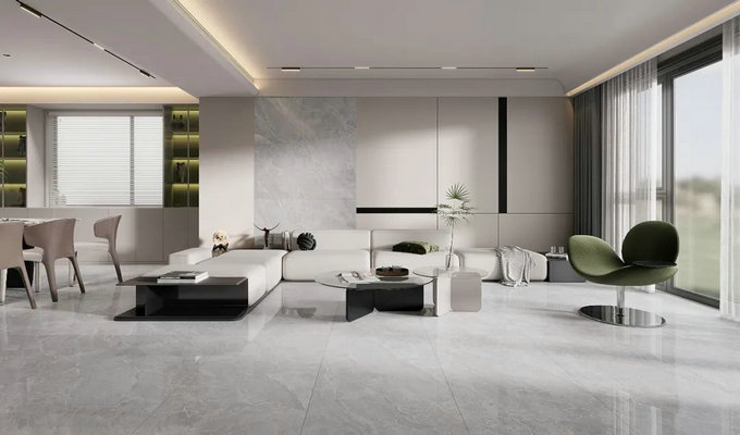 通体大理石瓷砖-L75006-750×1500mm-现代大平层客餐厅效果